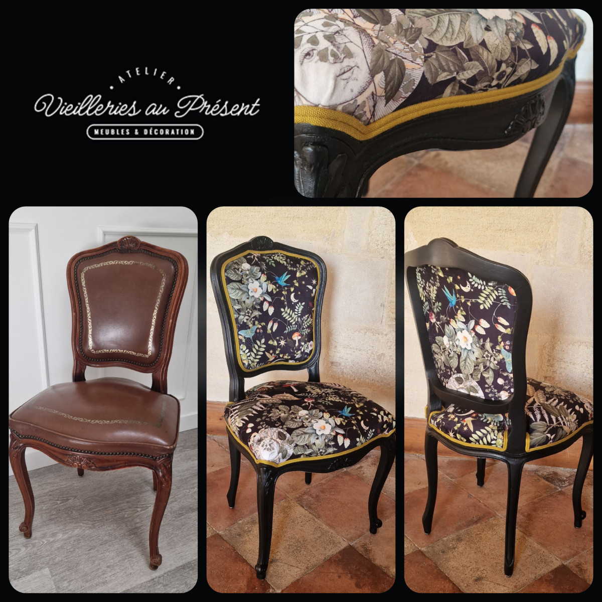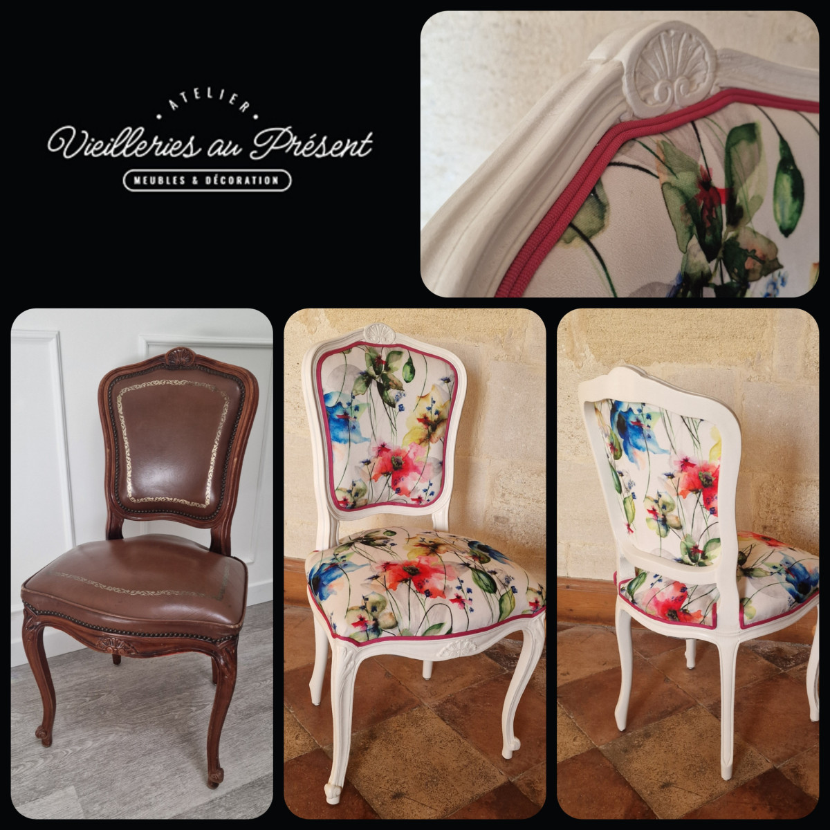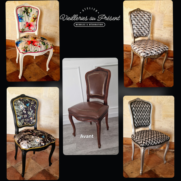 Dans cet espace vous découvrez quelques unes de mes réalisations d'assises, chaises années 50, chaises Louis Philippe, chaises médaillon Louis XVI, fauteuils médaillon Louis XVI, Cabriolet Louis XV, chaises bistrot, pouf, ...