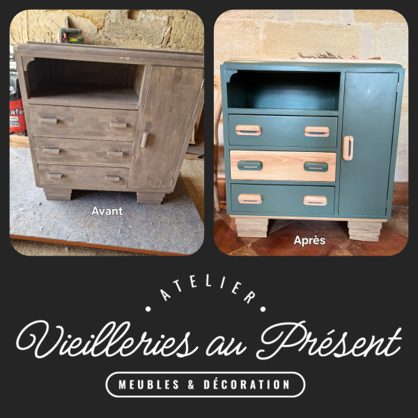 Vous trouverez ici tout les meubles et articles qui sont passés dans l'Atelier VIEILLERIES AU PRÉSENT qui attendent de prendre place dans leur nouveau foyer et écrire la suite de leur histoire.