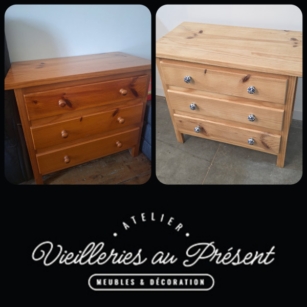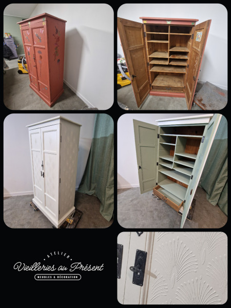 Dans cet espace, vous trouverez les divers meubles rénovés et relookés, ou plus simplement sublimés, après être passés dans l'Atelier VIEILLERIES AU PRÉSENT et avoir reçu toute l'attention qu'ils méritent, les revoilà dévoilant leurs plus beaux atouts.